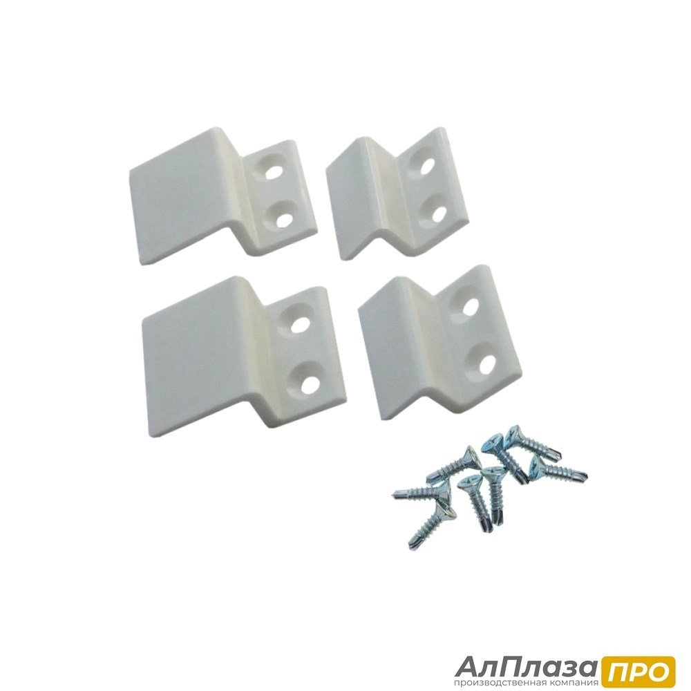 Комплект крепления москитной сетки Белый, Пластик (кронштейн + саморез)