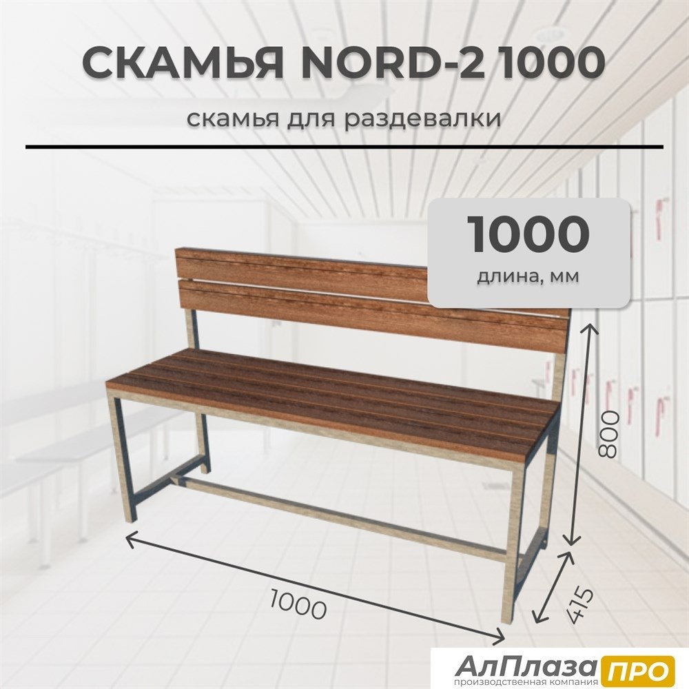 Скамья для раздевалки серии NORD-2 1000 со спинкой имеет размер (Д*Г*В) 1000*415*800 мм, изготовлена из металлического каркаса сечением 25*25, покрыта полимерно-порошковой краской серого цвета (RAL7035). Настил изготовлен из лиственницы сорта "Б" размером 90*20 мм покрытый матовым лаком (каталог цвета настила). Конструкция скамьи, в базовой комплектации, цельносварная. По согласованию можно изготовить разборный каркас для удобства транспортировки и уменьшения стоимости доставки Настил крепится к каркасу скамейки NORD при помощи мебельных болтов.